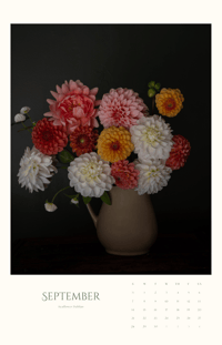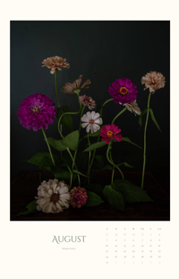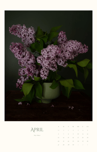 The 2025 calendar features 12 original still-life photographs, each showcasing stunning flowers from Cross Street Flower Farm, Lune Flower Farm, Summer Stone Flower Co., and Seaflower Farm. The calendar measures 9 x 14 inches, with each photograph sized at 8 x 10 inches. Printed on individual pages and spiral-bound, the calendar offers a practical design: each month is displayed on a single page, making it easy to cut out and frame the photographs once the month ends.